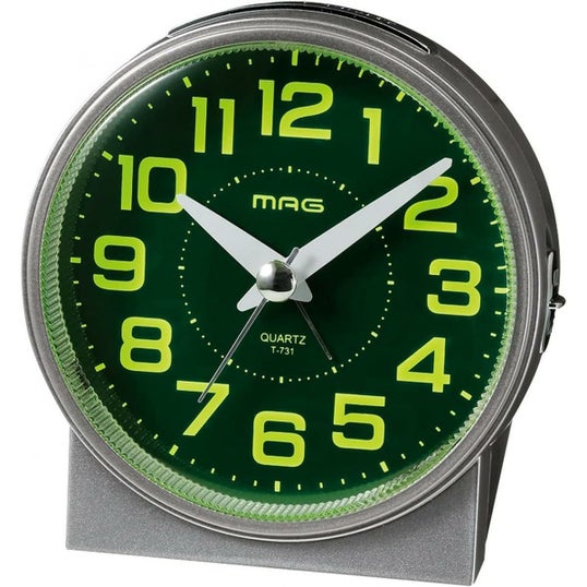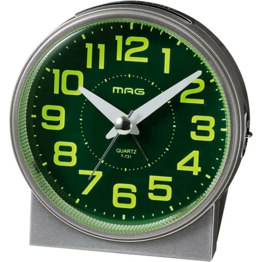 MAG マグ 常時点灯 目覚まし時計 光助 コウスケ T-731SM-Z 静音 連続秒針 スヌーズ機能 ライト付き シルバー