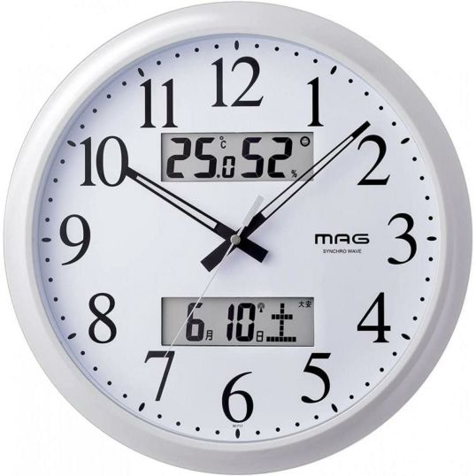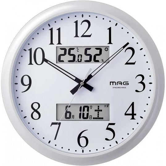 【在庫有・即納】 MAG 温湿度計付き電波掛け時計 ダブルリンク W-711 WH