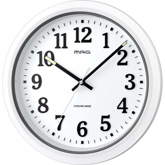 MAG マグ 掛け時計 電波時計 防水 防塵 アナログ ナヤ IP67 夜間秒針停止機能付き 立体文字 プラスチック風防 ホワイト W-734WH-Z