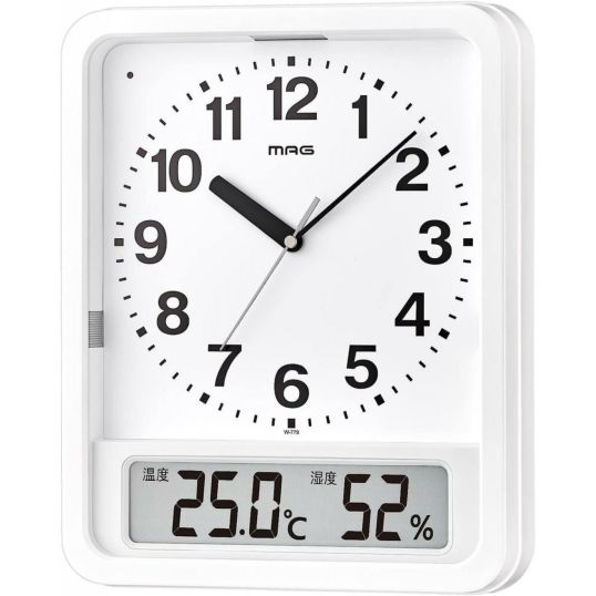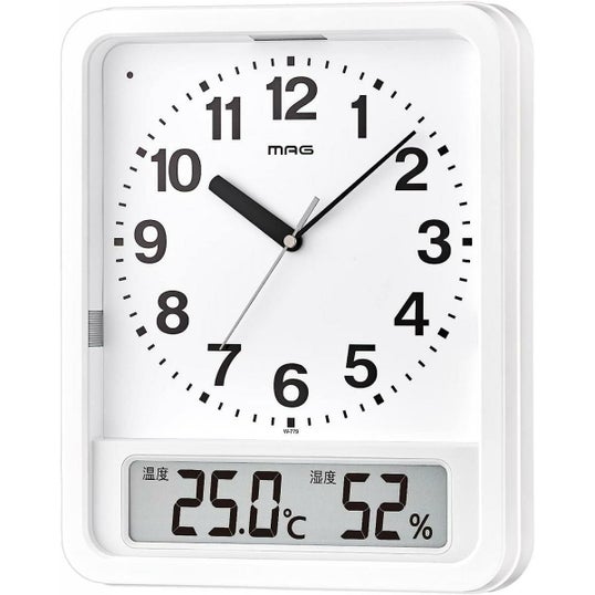 MAG マグ 掛け時計 電波時計 アナログ ルック ライト付き 自動点灯 温度 湿度 表示 置き掛け兼用 ホワイト W-779WH-Z