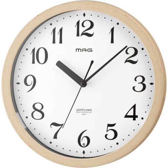 MAG マグ 掛け時計 電波時計 自動点灯 木目調 ナチュラル アナログ 灯 トモル 夜間秒針停止 W-791N-Z