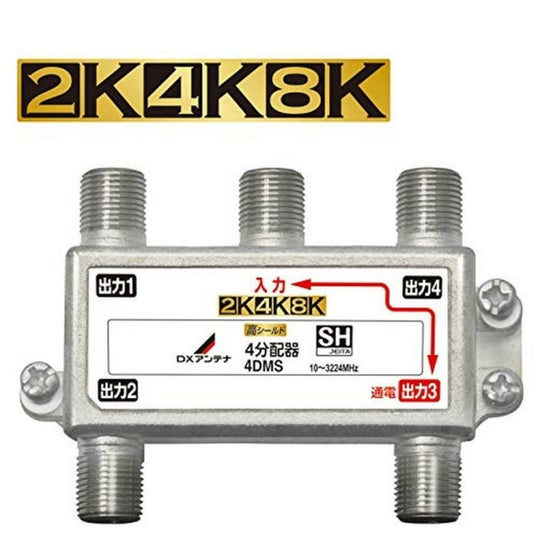 DXアンテナ 分配器 【2K 4K 8K 対応】 4分配 1端子通電形 金メッキプラグ F型端子 ダイカスト製高シールド構造 4DMS(P)