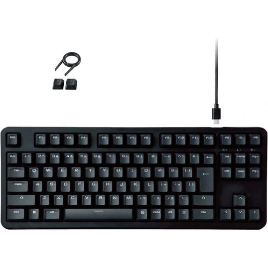 ・ガンシューティング系ゲーム(FPS)の高速な指の動きにもぴったりハマるサイズ感、キー配列、キー形状を精緻に作り上げた、銀軸搭載のテンキーレスゲーミングキーボードです。