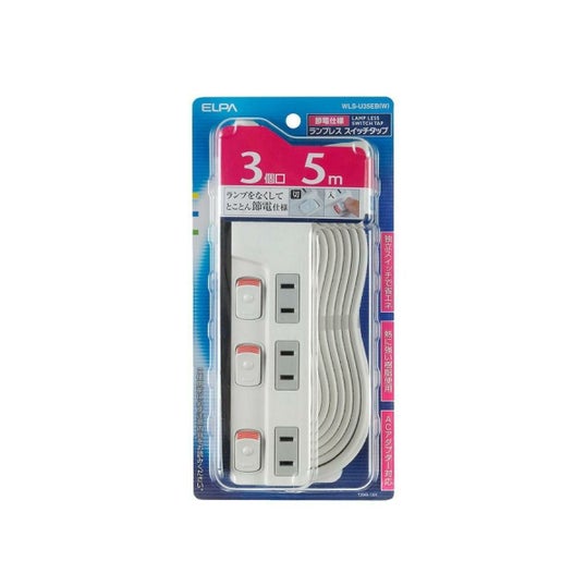 ELPA エルパ スイッチ付タップ ランプレス 3個口 5m WLS-U35EB(W)