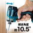 ビット振れ「業界最小」、ダブルボールベアリング採用。新形状ビットスリーブ。縁にリブを設け、スリーブが部材に当たっても傷つけにくい。※国内充電式インパクトドライバにおいて。2022年12月、マキタ調べ。傾き角度約10.5°。優れた隅打ち性能でカムアウトを低減。壁際の作業も快適。作業に合わせて、最適なモードを選択可能。モードメモリー機能。2つのボタンを同時に押すことで、よく使うモードを1つ登録可能。手元ボタンで「直前まで使用していたモード」と「登録モード」を切替え。