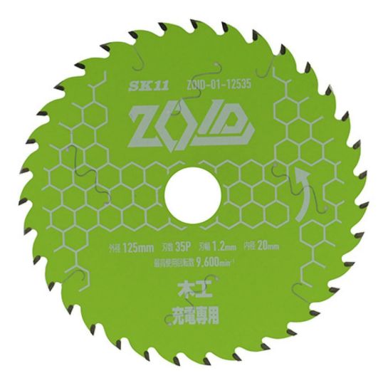 SK11 ZOIDチップソー 木工用 ZOID-01-12535 充電丸ノコ専用チップソー12ⅴ~40ⅴ 125mm 刃数35P プロ仕様