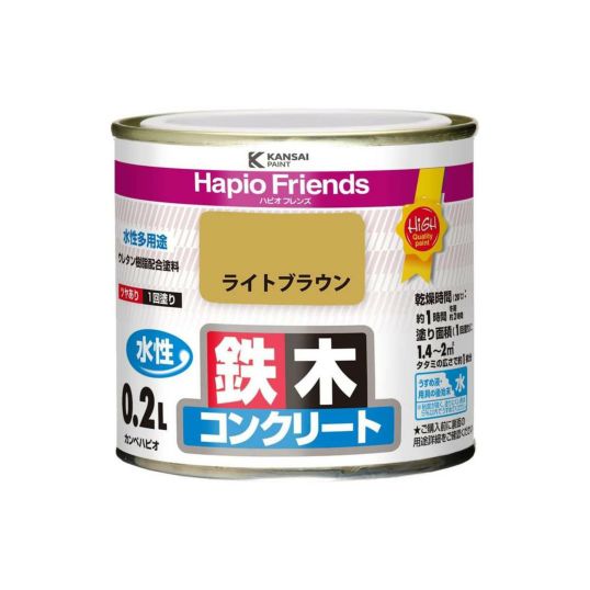 カンペハピオ(Kanpe Hapio) 水性多用途 ハピオフレンズ 0.2L ライトブラウン ツヤあり 防サビ 防カビ 屋内外用 ウレタン樹脂配合塗料 鉄 木 コンクリート