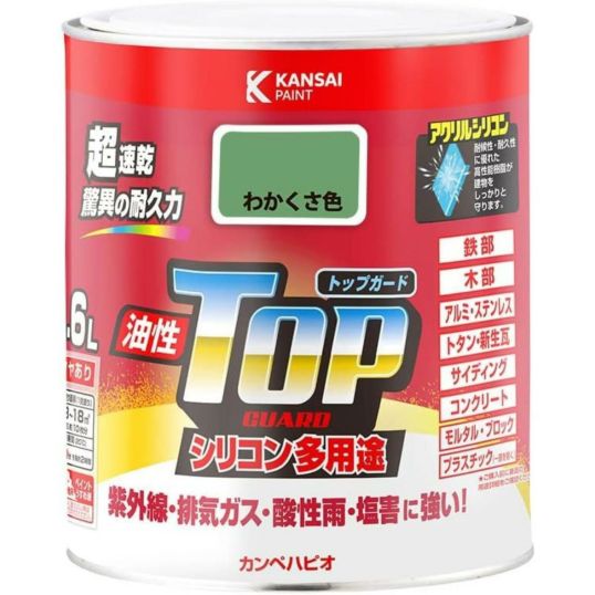 カンペハピオ(Kanpe Hapio) ペンキ 塗料 油性 つやあり シリコン樹脂 多用途 超速乾 さび止め剤入り トップガード わかくさ色 1.6L 油性塗料 日本製