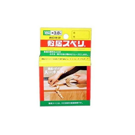 敷居の磨耗を防ぎ、ふすま・障子の開閉をスムーズにするテープです。 テープ式で取り付け簡単。建具の開閉をスムーズにし、敷居を長持ちさせます。 [(財)健在試験センター試験結果] 1.敷居の減りは木材より少なく、8倍以上も長持ちする。 2.建具を動かすのに約1/3の力で軽快に動く。 3.熱膨張・割れ・収縮などの心配はない。 サイズ:幅1.8cm×3.8m巻 素材:ポリエチレン カラー:木目柄 原産国:日本 注意事項:雨戸には使用しないでください。