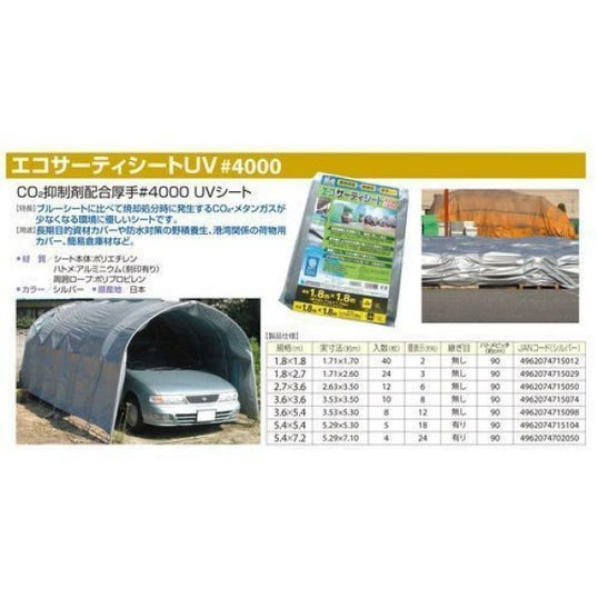 【廃番】萩原工業 4000 エコサーティシートUV 1.8X2.7m シルバー