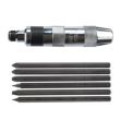 ●普通のドライバーでは、ゆるめる事のできない頭のつぶれたネジ、錆びついたネジのゆるめ作業や、特に強く締め付ける作業などに最適です。●パッケージサイズ/縦:225mm横:110mm高さ:33mm●パッケージ重量:640g●用途:自動車・二輪車・船舶・建築・橋梁・電気機器・産業機械等の組立及び修理・解体作業●セット内容:ビット-5・-6・-7・+1・+2・+3、本体●切替:左右切替