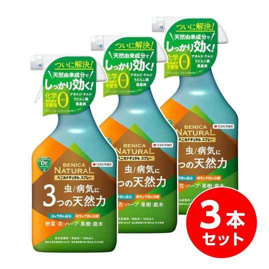 【在庫有・即納】KINCHO園芸 殺虫殺菌剤 ベニカナチュラルスプレー 1000ml×3本セット 天然成分 虫 病気 アブラムシ ケムシ うどんこ病