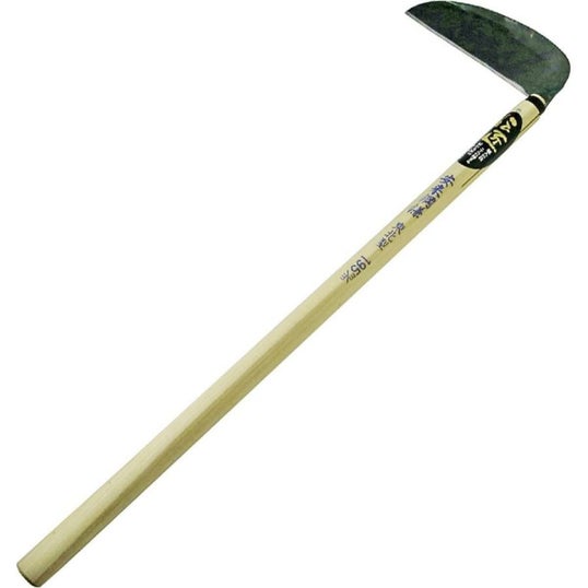 主に東北地方で愛用されてきた形状の草刈鎌です。柔らかい草を長い柄で薙ぎ払って使用するので便利です。
