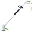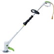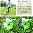金属刃と樹脂刃の2WAY仕様の草刈機です。花壇やフェンス等の障害物のある場所や壁のキワ刈りには樹脂ブレード。かたい草や枯草、太い茎等は金属刃と用途の合わせて刃を選ぶ事ができます。使いやすいループハンドルを採用しつらい体勢の必要なく、女性でも手軽に草刈りが可能です。ループハンドルをつかむ事でシャフトが短くなり姿勢が安定し、取り回しもラクラクです。作業中の刈った草や、思わぬ事故の原因となる処理物、小石などの飛散を遮断する大型安全カバーを標準装備していますので安全です。充電切れの心配もなく10mの延長コード付きパワフルにお使いいただけます。収納も持ち運びもコンパクトです。