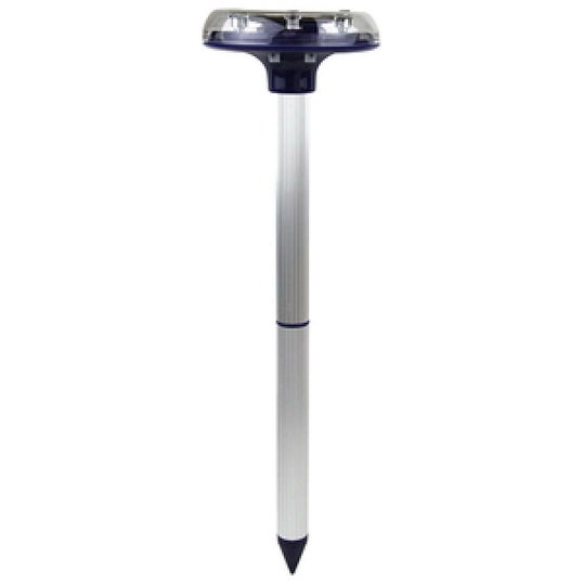 ●地上は赤と青のLEDフラッシュライトでシカやイノシシを撃退、地中は音波振動でモグラを撃退します。