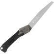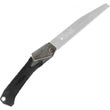 折り込んだ状態でグリップから出ている鋸刃先端を材料等に引っ掛けて片手で開くことができる!