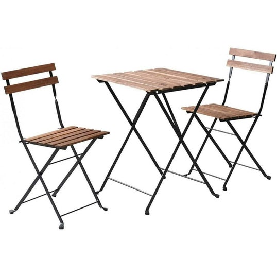 アカシア天然木とスチールの組み合わせがおしゃれなガーデンテーブル&チェアの3点セット