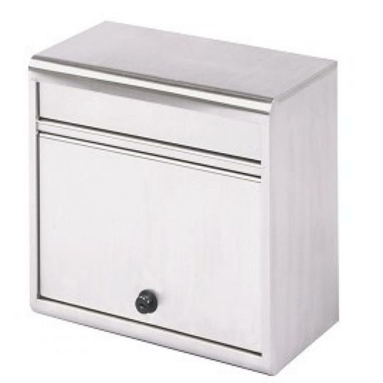 さびにくいステンレスポスト。ハガキが取り出し易いエンボス付です。A4サイズの郵便物がスッポリ入る大型ポストで、カムロック錠付!
