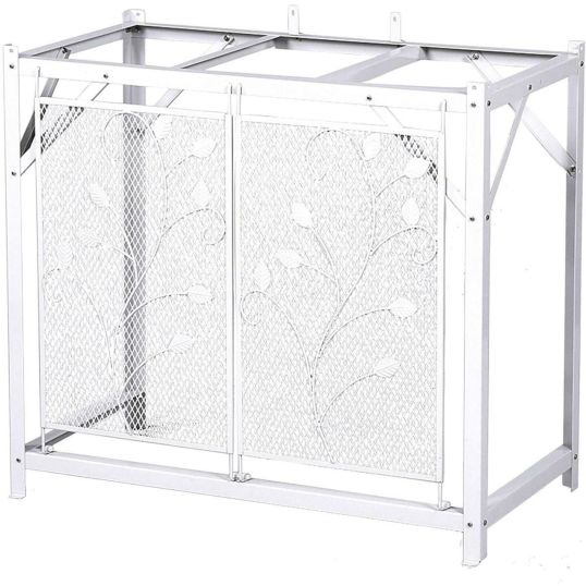 エアコン室外機のカバーで上部に同メーカーの収納庫(HS-92)の設置が可能です。(収納庫は別売です)