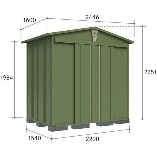 ■土台寸法:幅220x奥行154x高さ225.1cm ■屋根寸法:幅244.6x奥行160x高さ225.1cm ■床面積:3.38平方メートル ■坪数:1.03坪 JAN/4904780248484