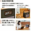 付属品:AC100V充電ケーブル、DC12Vシガーソケット充電ケーブル