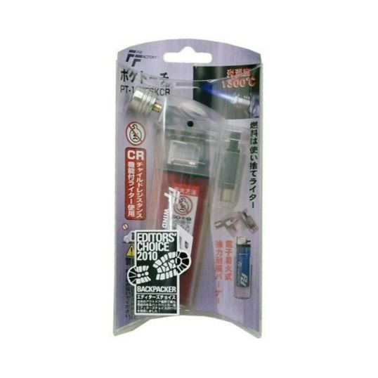 ●炎温度(°C):1300●発熱量(kcal/h):80●燃焼時間(分/ライター):20●電子着火式●スケルトン●小物のはんだ付け。●ロープの切断。●各種着火作業。●炎温度約400°Cの使い捨てライターが1300°Cの強力バーナーになります。●ライターとして使うより使用時間が約60%アップします。●優れた耐風性能です。