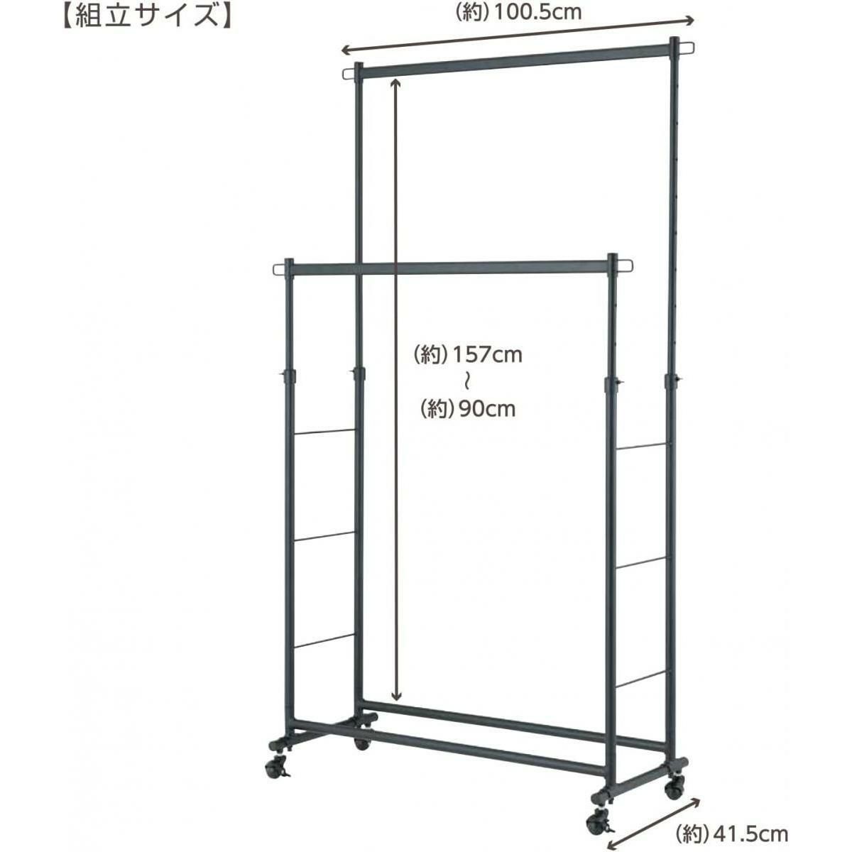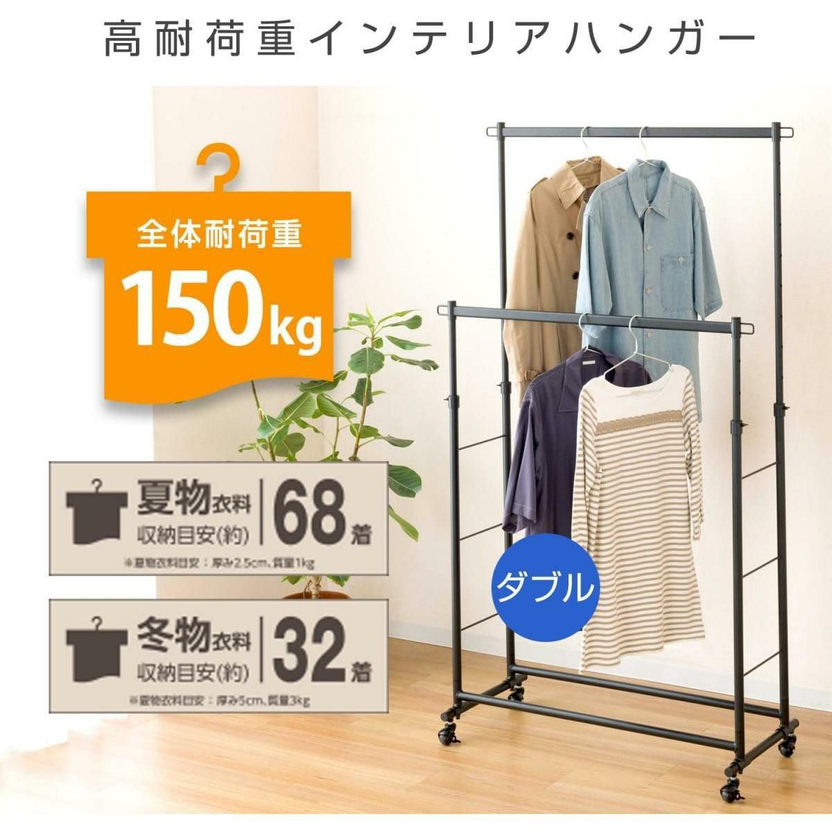 【在庫有・即納】ドウシシャ 高耐荷重インテリアハンガー ダブル ブラック LIHD-100BK 耐荷重150kg パイプハンガー 衣類収納 洋服 洋服掛け