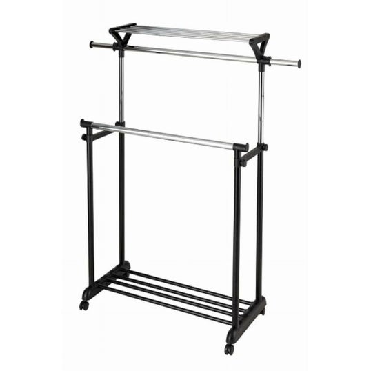 ドウシシャ 上棚付伸縮 ハンガーラック ダブル ブラック MUHD-90BK 幅93.5~136×奥行50×高さ110~173cm パイプハンガー 衣類収納