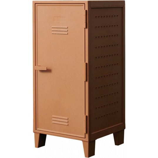 側面にペグボードが付いたプラスチック製のロッカー型収納ケースです。