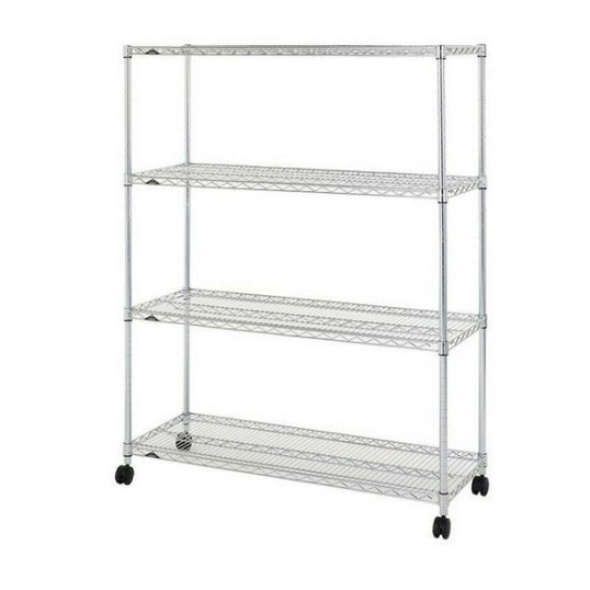 ●幅(約)121.5X奥行き46X高さ157cm●ポール径:25mm●棚一枚あたりの耐荷重 約250Kg●防さび加工(クリアコーティング仕上げ)●材質シェルフ(棚)・ポール:スチール(クロームメッキ)スリーブ:ABS樹脂●付属パーツ:標準アジャスター・ナイロンキャスター●棚の高さは約2.5cm間隔で調節可能●お客様組み立て品です。●ご注文間違い等のお客様都合による返品・交換はお受けできませんので寸法等、十分にご検討のうえご注文下さい。