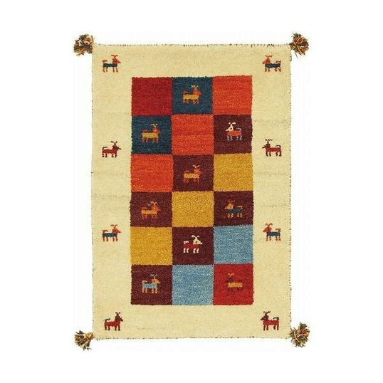 萩原 ギャッベ 玄関マット 約45×75cm GABBEH D3 ウール 手織り マット ラグ おしゃれ