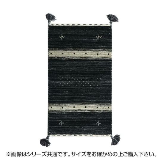 萩原 マット ブラック 約70×120cm ギャッベ「LORRI BUFFD L17」 ラグ ラグマット ウール 玄関マット オールシーズン