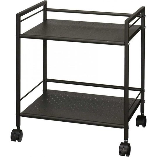 落下防止のフレームが付いているので、棚上のものが落ちる可能性が低くなります。書類やファイル、本なども収納しやすく、移動時も安定感があります。
