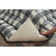 布団の中綿には、東レの特殊な製糸技術から生まれた、「東レマッシュロン綿」を使用。繊維の中央の穴が空いているので、その分軽く、ふかふかな弾力が魅力。こたつから生まれた温かな空気が繊維1本1本の中に入り、温かさをキープしてくれます。