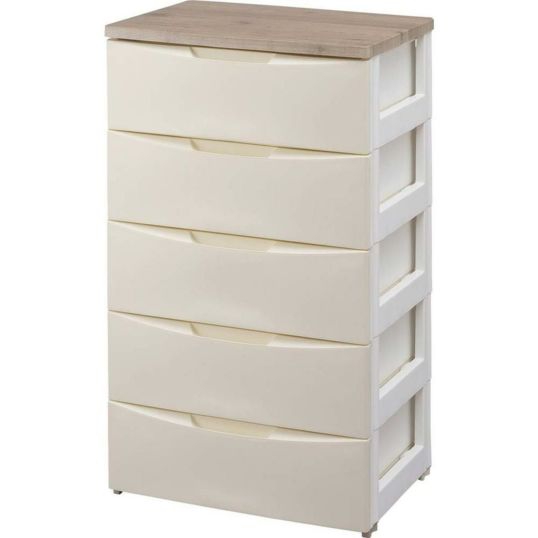 アイリスオーヤマ デザイン チェスト 5段 木天板 幅約56×奥行約42×高さ約100cm アイボリー DW-555