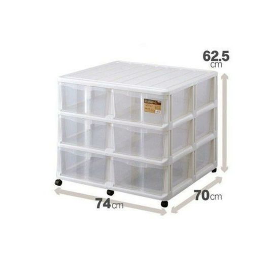 【仕様】 商品名:押入れ収納ケースWM-306 カラー:ホワイト 最大外寸(約):幅74×奥行70×高さ62.5cm(キャスター使用時) 有効内寸(約):幅29.9×奥行63.8×高さ16cm(×6個) 収納の目安:セーターが約36枚収納できます 付属品:差込式キャスター 材質:本体:ポリプロピレン、キャスター:ナイロン JANコード:4904746352644 備考:組立家具(お客様組立商品)