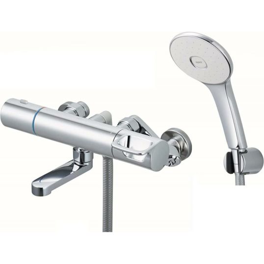 設定温度に自動で調整されるサーモスタット式シャワーバス水栓の洗い場専用短尺吐水口タイプ