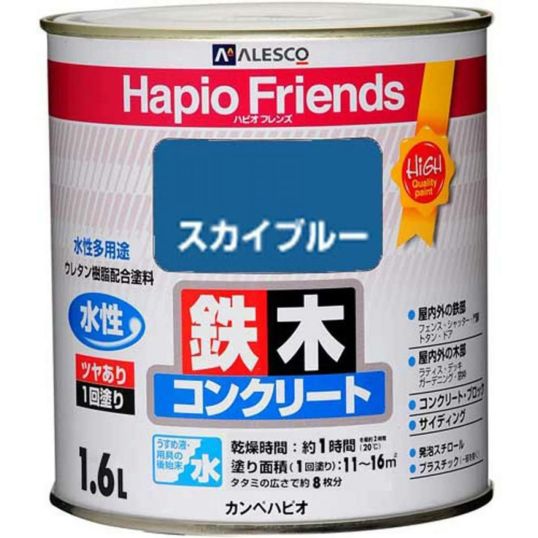 カンペハピオ(Kanpe Hapio) ハピオフレンズ 1.6L スカイブルー 水性多用途 鉄 木 コンクリート ツヤあり 1回塗り ペンキ