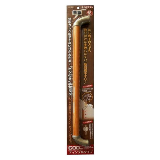 ●はじめての方でも取り付けに失敗しにくい新機構手すり! ココが新機構!!壁の裏側の見えない柱を探すことができる「下地探しピン」付き手すりです!! ココが新機構!!ピンがブラケットの中心にあるので(タテ2本)のビスは探し当てた下地(柱)を確実にとらえることができる安心機構です しっかり握れてすべりにくいディンプル形状!!縦型手すりに最適です 自然木を使用したぬくもりある上質な握り心地です 玄関など、立ったり座ったりする場所は長さ600mm以上が適しています。●和気産業のぬくもり手すりPIN+ プラス ディンプルタイプをダイユーエイト.comでは販売しております。その他の安全金物も多数取扱っております。