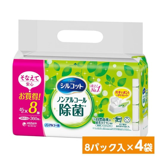 【まとめ買い】ユニ・チャーム シルコット ノンアルコール 除菌 ウェットティッシュ つめかえ用 45枚×8パック×4袋セット