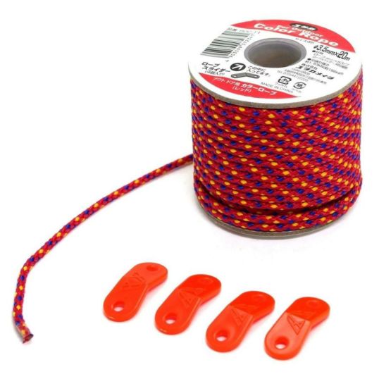 ユタカメイク アウトドア用カラーロープ 3.5mm×20m (ロープスライダー4個入) レッド ROC-11