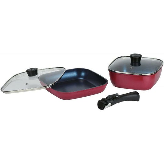 パール金属 クックウェア 5点 セット スクエア ブルーダイヤモンドコート レッド IH対応 オーブン対応 スタックプラス HB-5920