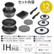 フライパン26cm、炒めなべ25cm、なべ16cm、なべ20cm、エッグパン、ガラスふた16cm、ガラスふた20cm、ガラスふた26cm、シールふた16cm、シールふた20cm、マルチハンドル×2