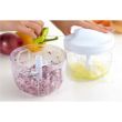 電気を使わず簡単みじん切り!ひもをギュンギュン引っ張るだけでできちゃいます!3枚刃と5枚刃仕様の回転刃で切れ味抜群!包丁やまな板も不要です。強力な回転力でみじん切りの粒の大きさを自由自在に調節可能!
