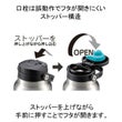 ・飲み口栓は誤動作でフタが開きにくいストッパー構造。ストッパーを上げながら手前に押すことでフタが開きます。