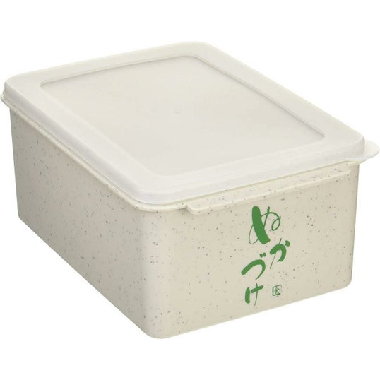 ぬか床の水分を簡単に取り除ける水取り器と、ぬか漬け用容器のセット。
