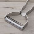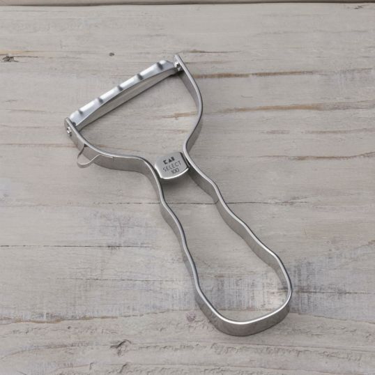 野菜の表面を滑るように、軽くて薄い切れ味の、斜め刃のステンレスピーラーです。