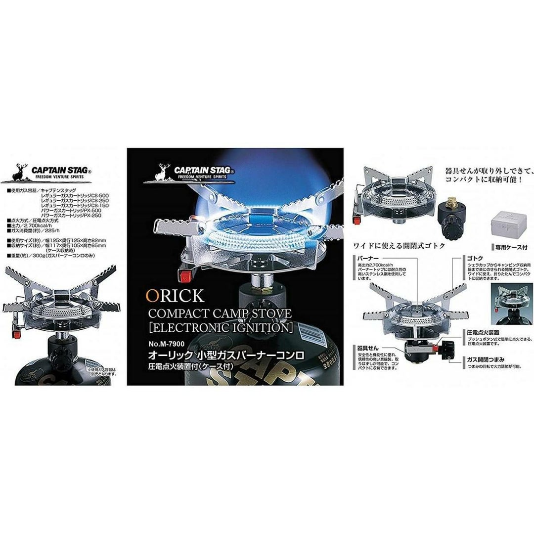 【在庫有・即納】キャプテンスタッグ オーリック 小型 ガスバーナーコンロ コンパクト (ケース付) AP00946 M-7900 アウトドアバーナー アウトドア 携帯コンロ