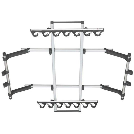 前後Jフックの汎用モデル。並継、振出、1ピースOK、グリップ径32mmまで対応。ロッドを片手で着脱できるシンプルなJ型フック。ホルダーの位置は前後左右に移動が可能。