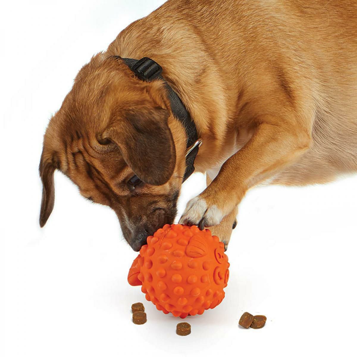 ●不規則に転がるハリセンボン型のペットトイは、おもちゃとして遊びながらおやつをゲットできるので、ストレス発散や運動不足の解消にも役立ち、留守番用おもちゃにもおすすめです。